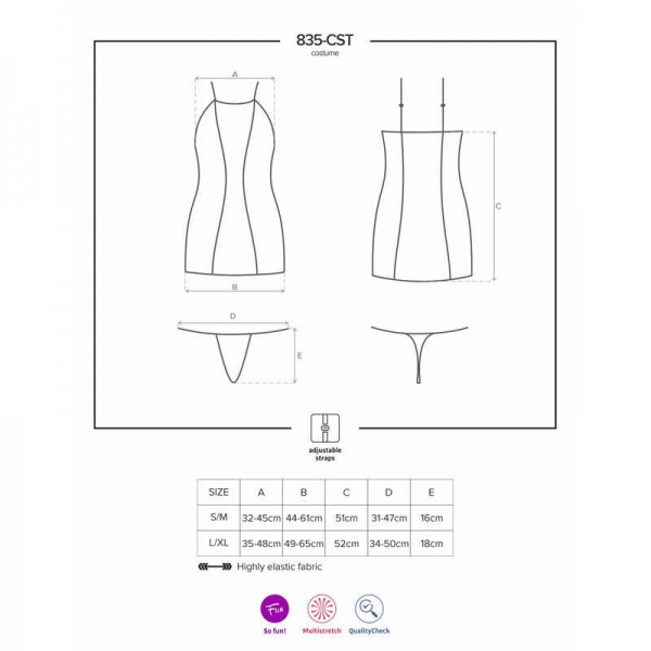 Костюм дъяволицы "Obsessive" пеньюар, ободок с рожками, чокер, мини-плетка, L/XL